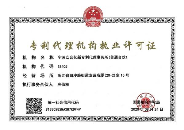 浙江億新知識產(chǎn)權(quán)服務(wù)有限公司前身為慈溪眾合知識產(chǎn)權(quán)代理事務(wù)所,創(chuàng)始于2004年,為了服務(wù)更多的創(chuàng)新企業(yè),實(shí)現(xiàn)“服務(wù)億萬創(chuàng)新企業(yè)”的理念,后更名為浙江億新知識產(chǎn)權(quán),旗下公司包括:寧波眾合億新專利代理事務(wù)所(機(jī)構(gòu)代碼33405)、中范(北京)認(rèn)證有限公司。其中寧波眾合億新專利代理事務(wù)所是慈溪市科技服務(wù)聯(lián)盟理事單位,前灣區(qū)知識產(chǎn)權(quán)工作站。公司位于浙江省慈溪市文化商務(wù)區(qū)友誼商廈,并在北京、青島設(shè)有辦事處。